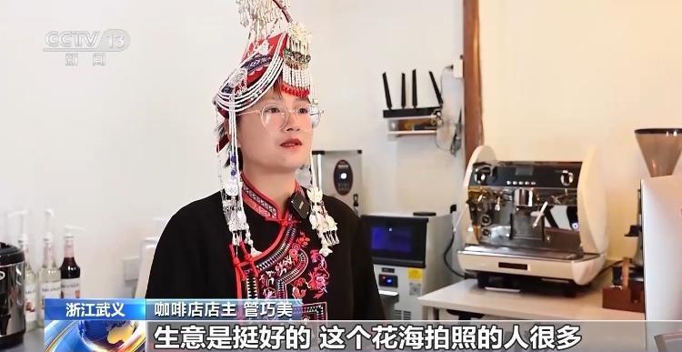 咖啡店店主 管巧好意思:生意是挺好的,花海拍照的东谈主好多。