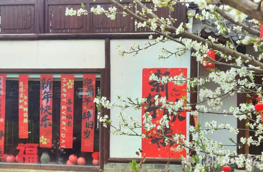 在孙桥梭罗河村的绣楼前,旧岁的红联还留在白墙木窗上,新抽的花枝已悄然攀上檐角。白的花、红的联,藏着冬去春来的蔼然过渡,也写满了东谈主间点燃里的岁月静好。