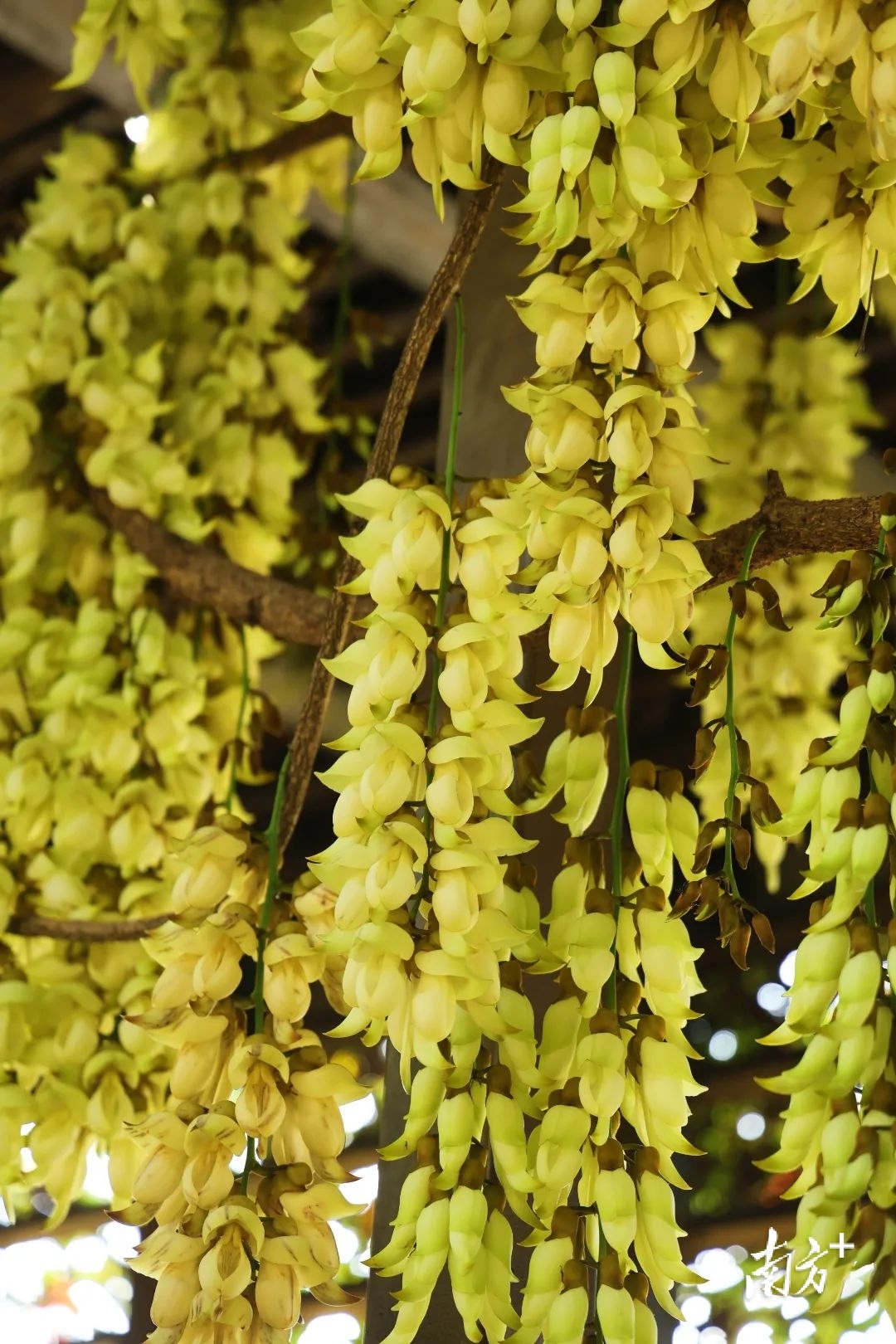 而在望牛墩的绿意深处,禾雀花也悄然绽放,为这场春日盛宴增添了一抹灵动的色调。它们如团结只只展翅欲飞的小鸟,蜂涌在藤蔓上,极新清雅。微风拂过,禾雀花轻轻摇曳,仿佛在枝端当先嬉戏,为春日增添了几分恢弘与期许。