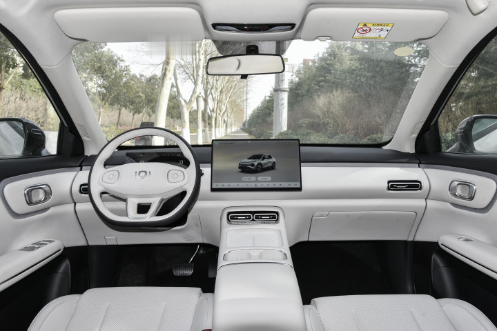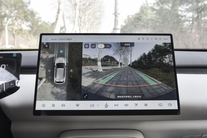 坐进车内,环抱式地平线姿色台布局让东谈主嗅觉很开畅,臀线以上的区域王人用了软质材料包覆,触感缜密,莫得那种硬塑料的低价感。座舱配色有玉石白和墨玉黑两种,玉石白清楚挽救,极端视宜有孩子的家庭,看着干净亮堂;墨玉黑则千里稳耐脏。全系标配10.17英寸全液晶姿色,自大了了。405 Air车型搭配的是14.6英寸中控屏,分辨率1920x1080,自大成果很缜密。车机搭载的天枢智能座舱系统,用的是4nm联发科芯片,解救HUAWEI HiCar、CarPlay和Carlink全互联,手机投屏、导航同步王人特别流通。语音叫醒响应很快,调空调、切音乐、查导航动动嘴就行,开车时毋庸分神去戳屏幕。标的盘持感适中,电子怀挡的绸缪检朴了中控空间,让前排储物更活泼。座椅方面,405 Air给与织物与皮质混搭,透气性很好,春天坐深远也不会闷汗,收拾起来也浅近,湿毛巾一擦就干净。