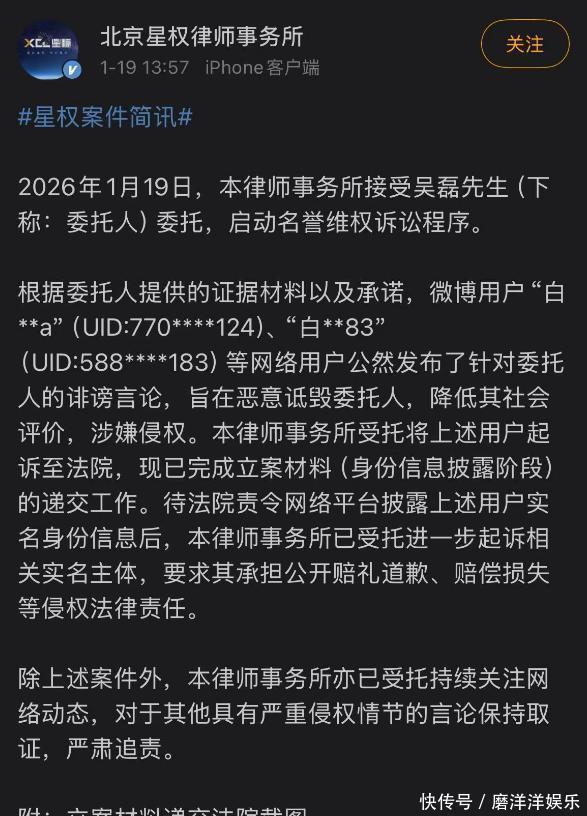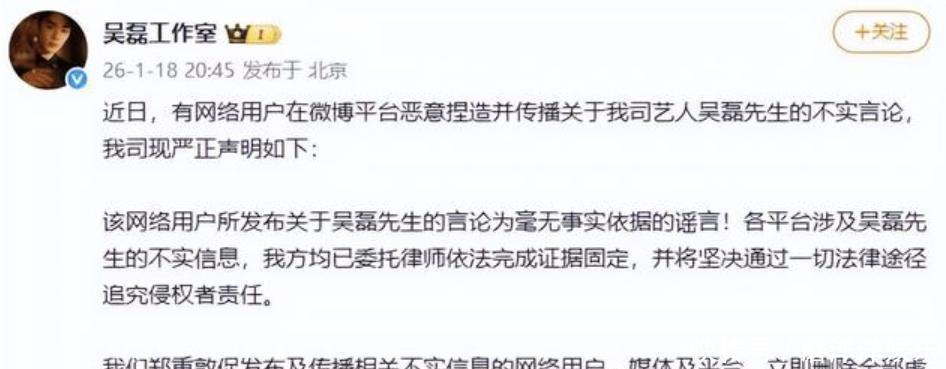 不外赛博嫂子似乎忘了,当前的文娱圈早就参加了拼实力的时间,至少吴磊的责任室在谣言一冒出来后一个小时,就迅速发出了正经声明,把这事定性为坏心责难,还说他们依然掌抓了笔据,准备拿告状讼。