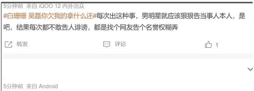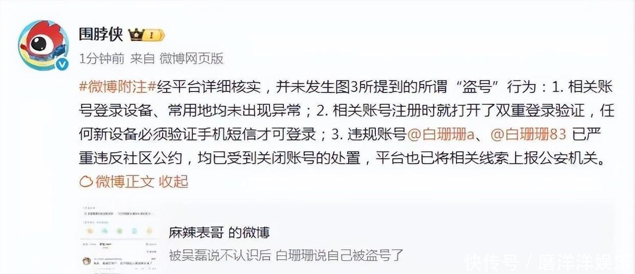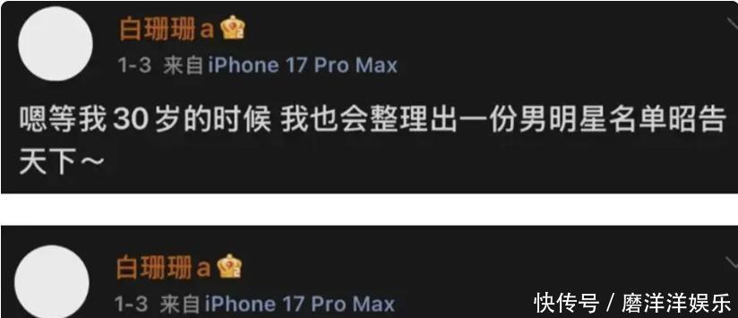 如若“白珊珊a”在账号被封的时候能收手,可能也不会闹得太难熬,不外她一朝大号封了,又用小号络续寻衅,还说吴磊最先捂嘴都被扒出波及赵露想和何猷君,形貌就变得更挫折了。
