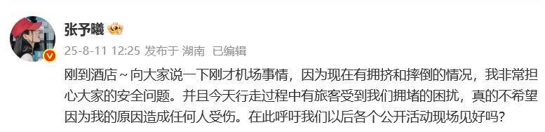8月11日,张予曦发文回答机场遭围堵事件:“刚到旅舍~向巨匠说一下刚才机场事情,因为当今有拥挤和颠仆的情况,我十分惦记巨匠的安全问题。况且今天行走历程中有游客受到咱们拥挤的困扰,真是不但愿因为我的原因形成任何东说念主受伤。在此敕令咱们以后各个公开手脚现场见好吗?”