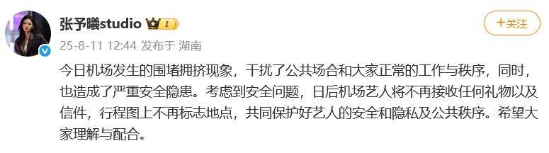 随时,其责任室也发声:“当天机场发生的围堵拥挤表象,骚动了群众局面和巨匠平素的责任与递次,同期,也形成了严重安全隐患。探究到安全问题,日后机场艺东说念主将不再接受任何礼物以及信件,行程图上不再标记地方,共同保护好艺东说念主的安全和秘密及群众递次。但愿巨匠连气儿与和谐。”