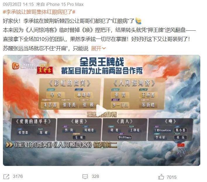 《饱经风雨5》第五轮舞台公演如故物化,总决赛行将开动录制,网友们齐相配关爱,哪支战队会成为“冠军”,其实,冠军战队不言而谕,李承铉早就给出示意,却被不雅众们忽略,诸位读者开云体育,你们发现了吗?