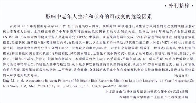 张长杰,影响中老年东说念主生存和龟龄的可变嫌的危机因素,中国康复,2023-05-25