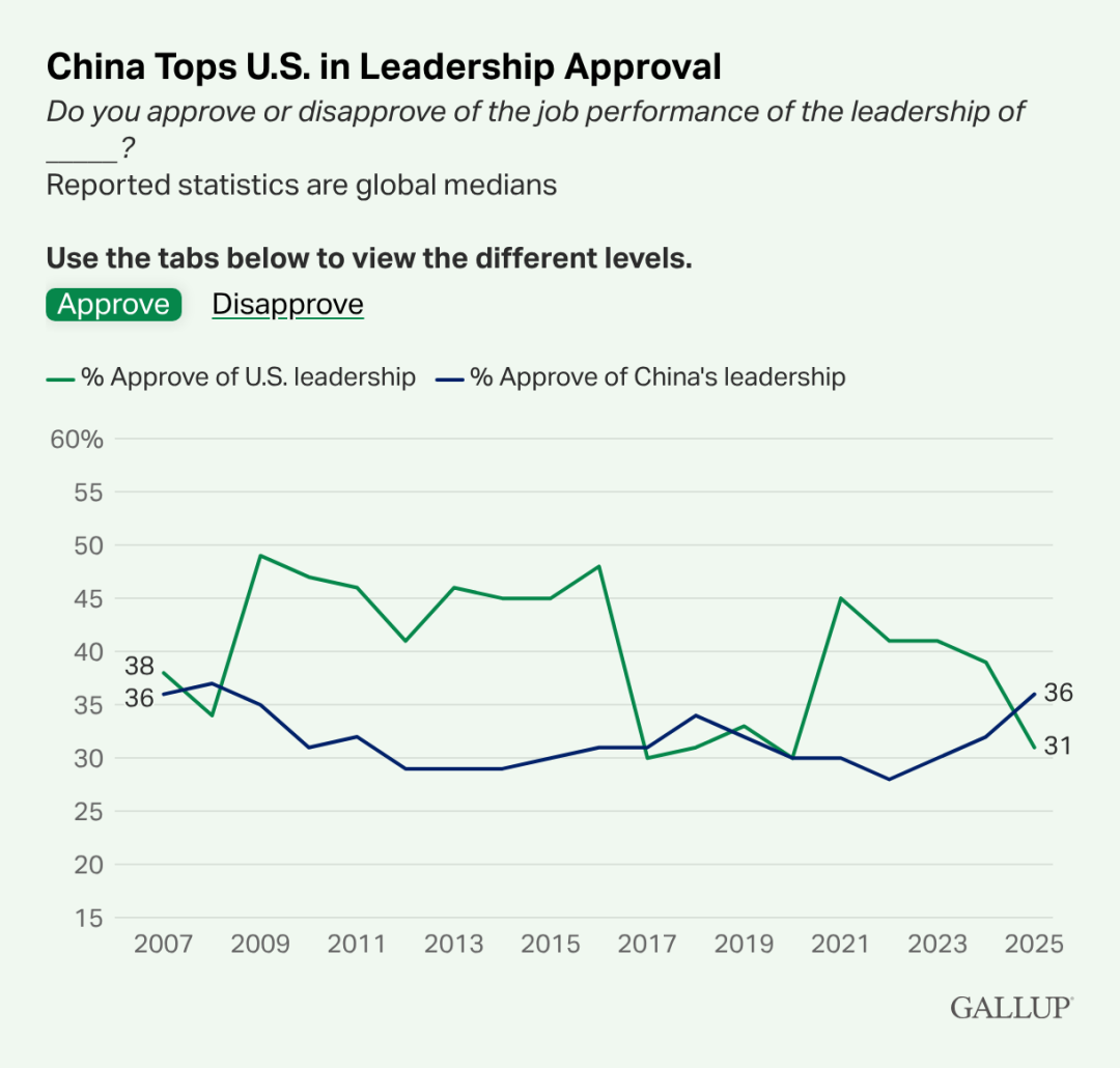 最近好意思国民调机构盖洛普(Gallup)发布了一份环球民意打听阐明:中国在环球认同度遥遥进步,为畴昔20年进步好意思国幅度最大的一次。