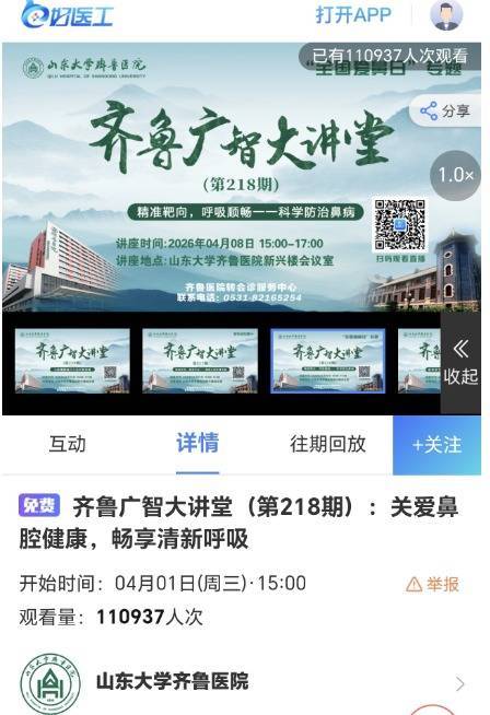 4月8日下昼,皆鲁广智大讲堂(第218期“寰宇爱鼻日”专题)在病院新兴楼会议室举办,同步开启线上直播。
