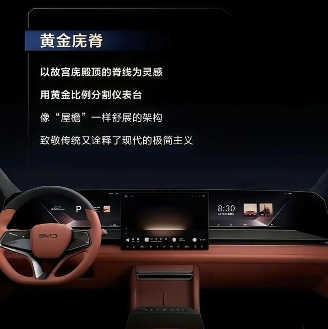 内饰经营上,大唐照旧有一些传统元素的,很是于是和当代风相联接,比如姿色台即是接纳黄金比例分割,像屋檐一样舒展是架构,请安传统又解说了当代的极简观念。