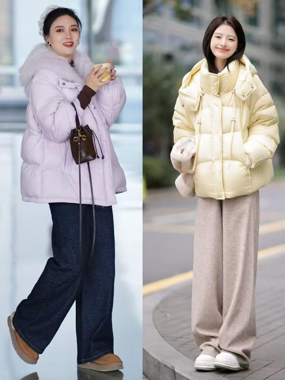 在这个冬季,我们不光要风范也要温度,不要为了呈现我方的躯壳而去弃取一条无痕裤来搭配羽绒服,这样的穿搭显得肥胖显胖,还不御寒。