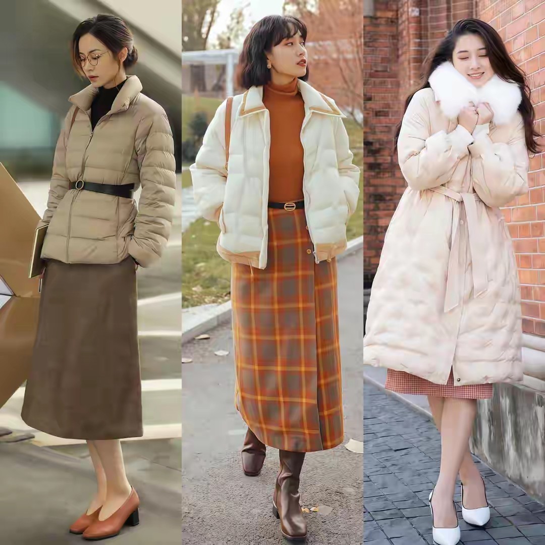 领有好躯壳的女生,在这个冬季也念念要呈现我方的躯壳上风,有的时辰你可能凯旋弃取一条短裙来搭配上羽绒服外衣,造成下半身适中的穿搭手段,这样能更好的展现出你的好意思腿,举例上头这一条驼色的短裙长度,好在膝盖以上三厘米阁下,这样的穿搭如实能让你变得愈加芳华靓丽又甜好意思可儿。