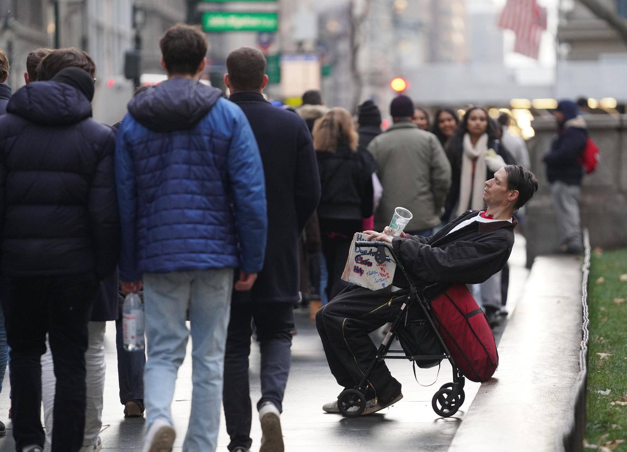 12月18日,又名男人在好意思国纽约曼哈顿街头寻求赈济。新华社记者张凤国摄记者在街访中更多听到的是这种“过紧日子”的无奈选拔。30岁的房地产从业者詹姆斯·菲格罗亚预测我方通盘沐日季的支拨将在1200好意思元傍边,比往年低许多;31岁的创业者托林·阿尔金斯把本年的礼物预算压缩到1000好意思元以内,因为“汽油、过路费、日用品、酒水……连穿着都在加价”;另又名受访者安东尼·戈麦斯预测本年过节破耗约500好意思元,“尤其是玄色星期五(感德节后一天)之后,我嗅觉价钱不降反升”。