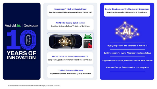 骁龙数字底盘将与谷歌汽车AI智能体、云做事深度集成,摄取边云羼杂架构,会聚终局侧即时反馈与云表捏续进化才智,复古多模态交互与个性化体验。